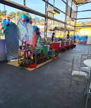 ✅ Decoração temática com painel, aparadores, bandejas, personagens do tema  e balões;